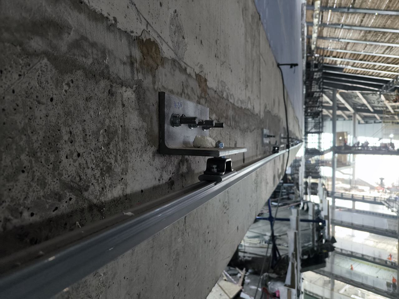 Для гарантии безупречного соответствия проектной документации разметка под анкерные крепления на объекте выполнялась с применением геодезического оборудования. Это позволило обеспечить максимальную точность и надежность будущей системы, что критически важно для безопасности высотных работ.